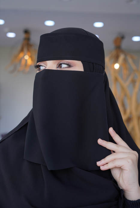 - اللون الأسود للبندانه والنقاب ثابت لا يبهت بسرعة مع الاستعمال كما أنه يتماشى مع جميع اشكال العبايات والوانها.