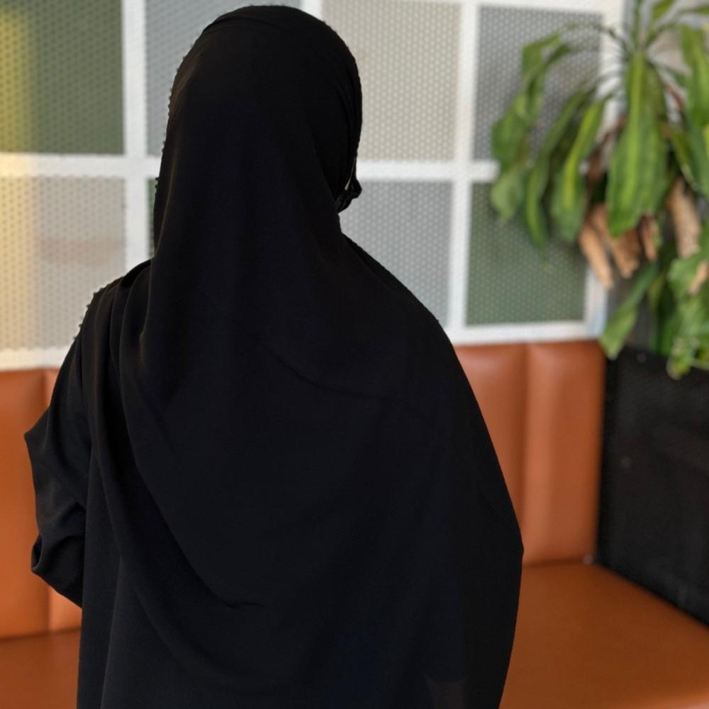 - اللون الأسود للطرحة ثابت لا يبهت بسرعة مع الاستعمال كما أنه يتماشى مع جميع اشكال العبايات والوانها.