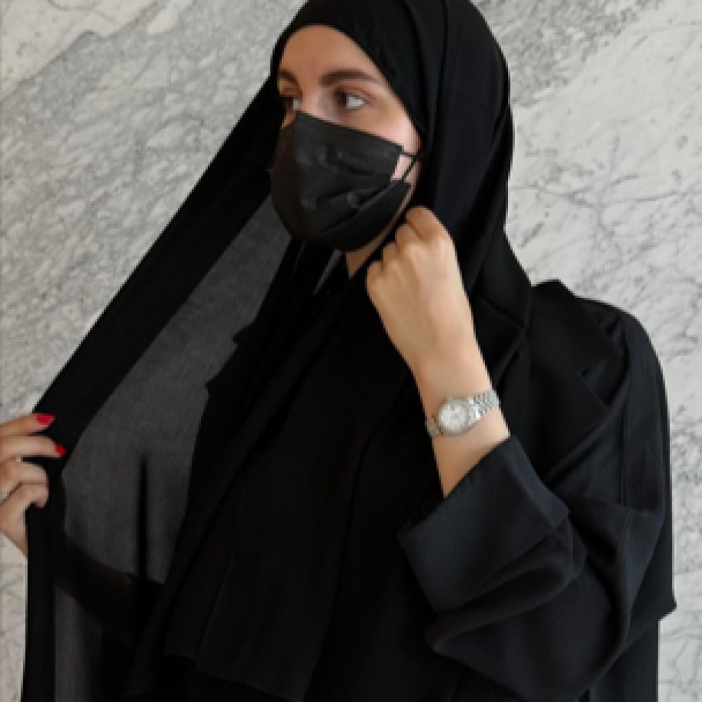 - اللون الأسود للنقاب والطرحه ثابت لا يبهت بسرعة مع الاستعمال كما أنه يتماشى مع جميع اشكال العبايات والوانها.