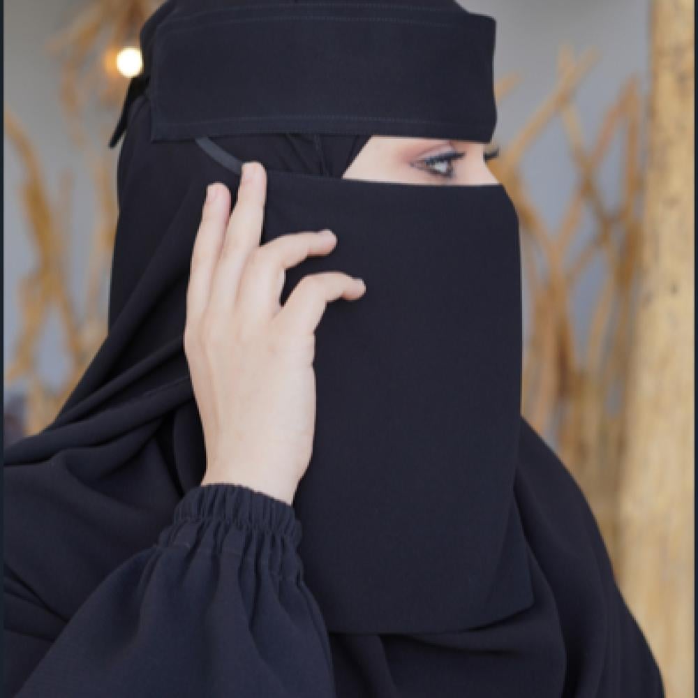 • اللون الأسود للنقاب ثابت لا يبهت بسرعة مع الاستعمال كما أنه يتماشى مع جميع اشكال العبايات والوانها.
